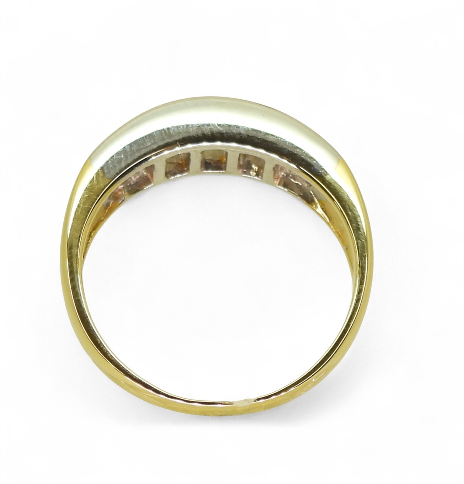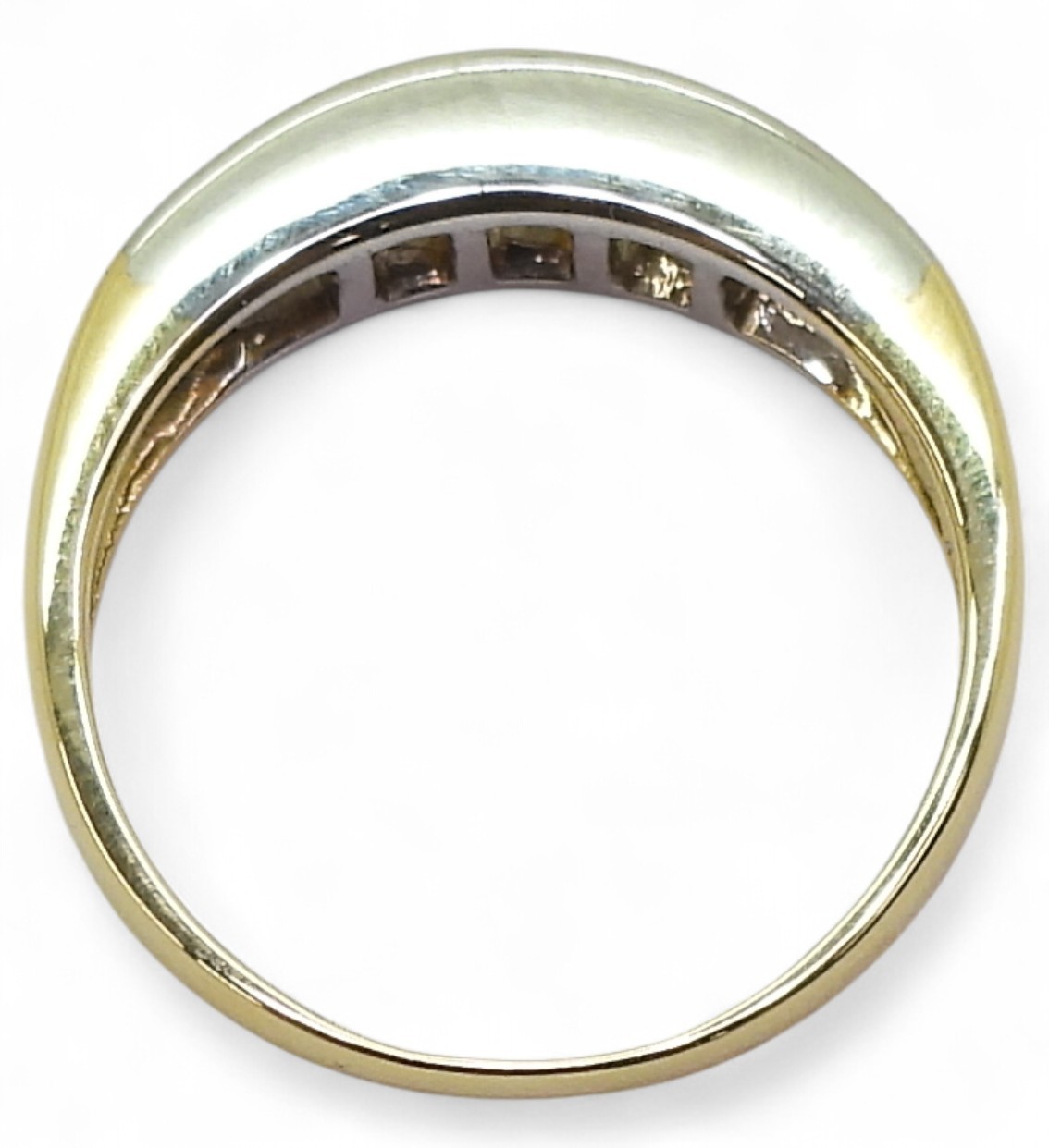Light general wear if any! A very pretty half eternity ring, the diamonds are good quality bright and clean.