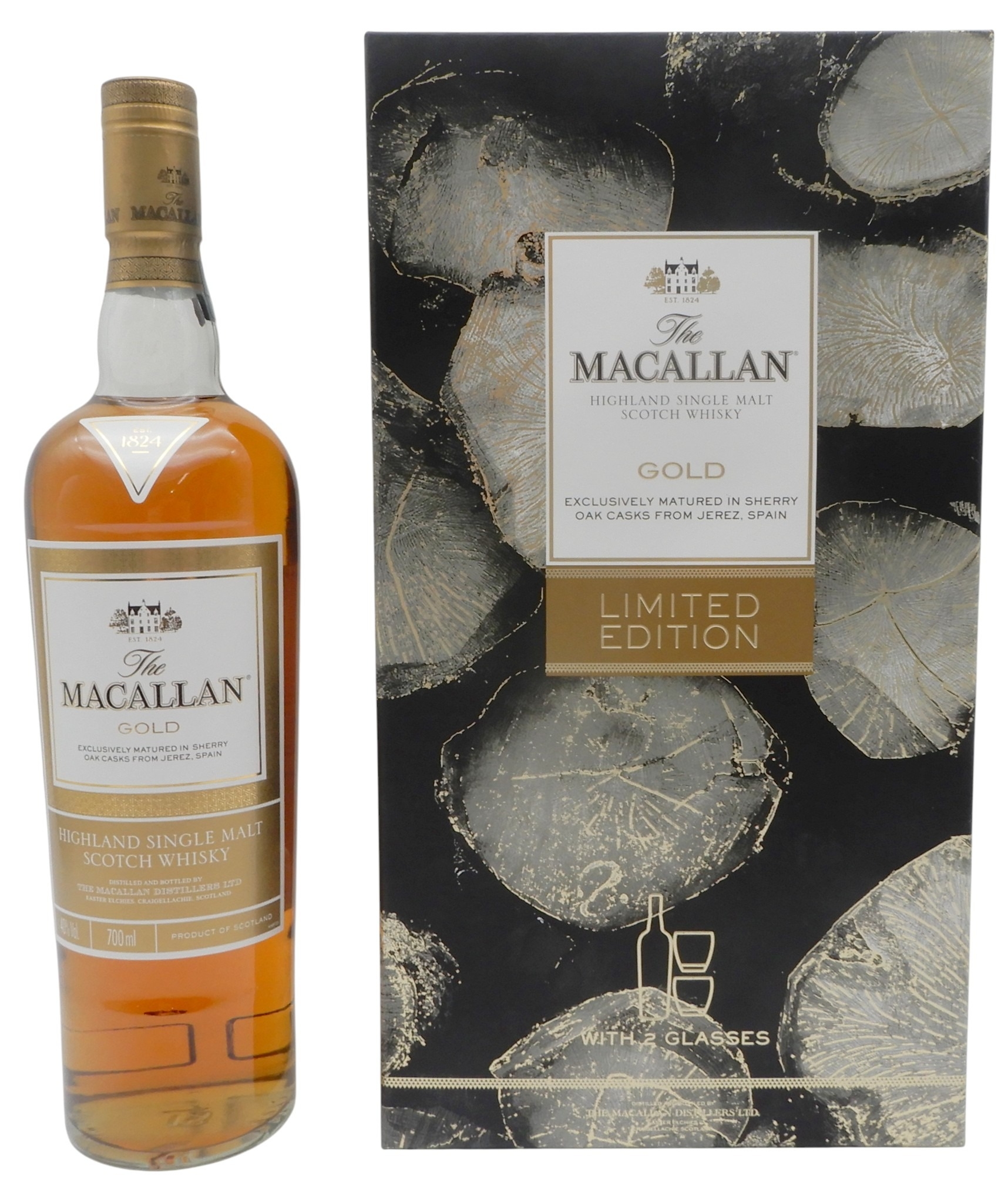 THE MACALLAN GOLD Limited Edition Gift Pack, Comprising One Bottle Of The MacAllan Gold Highland Single Malt Scotch Whisky, 700ml, 40% vol, presented with a pair of whisky glasses.