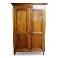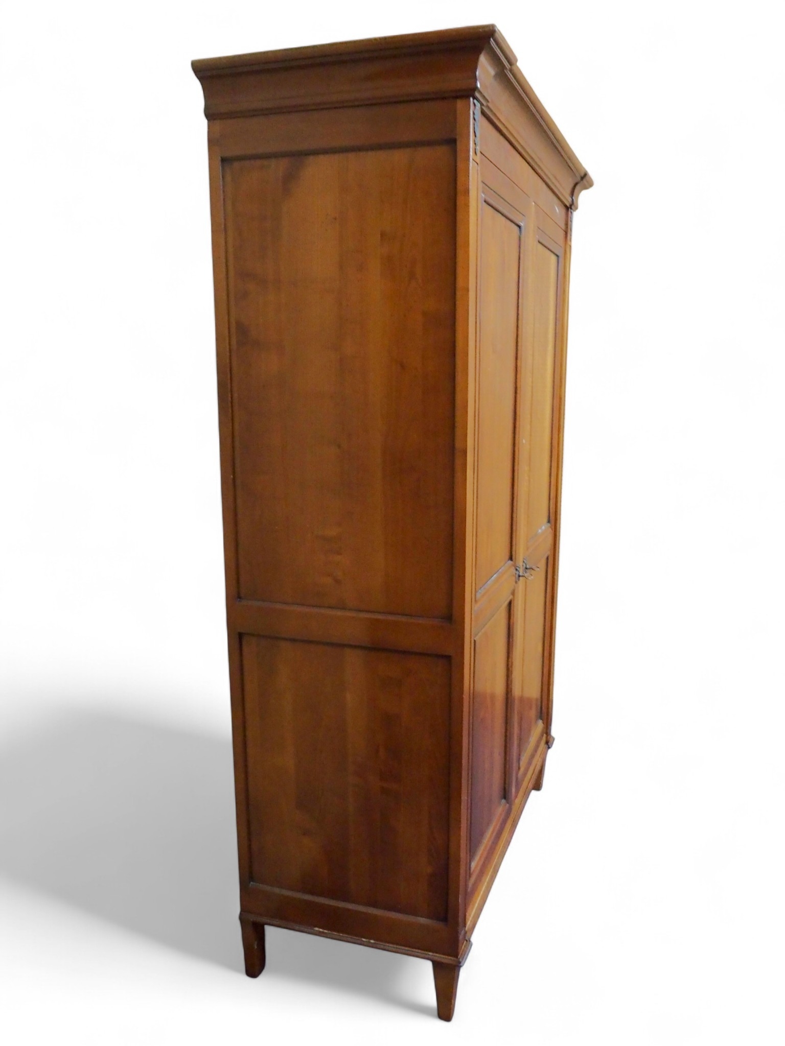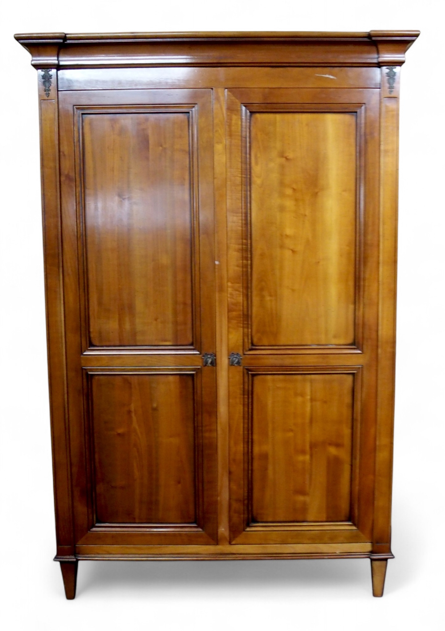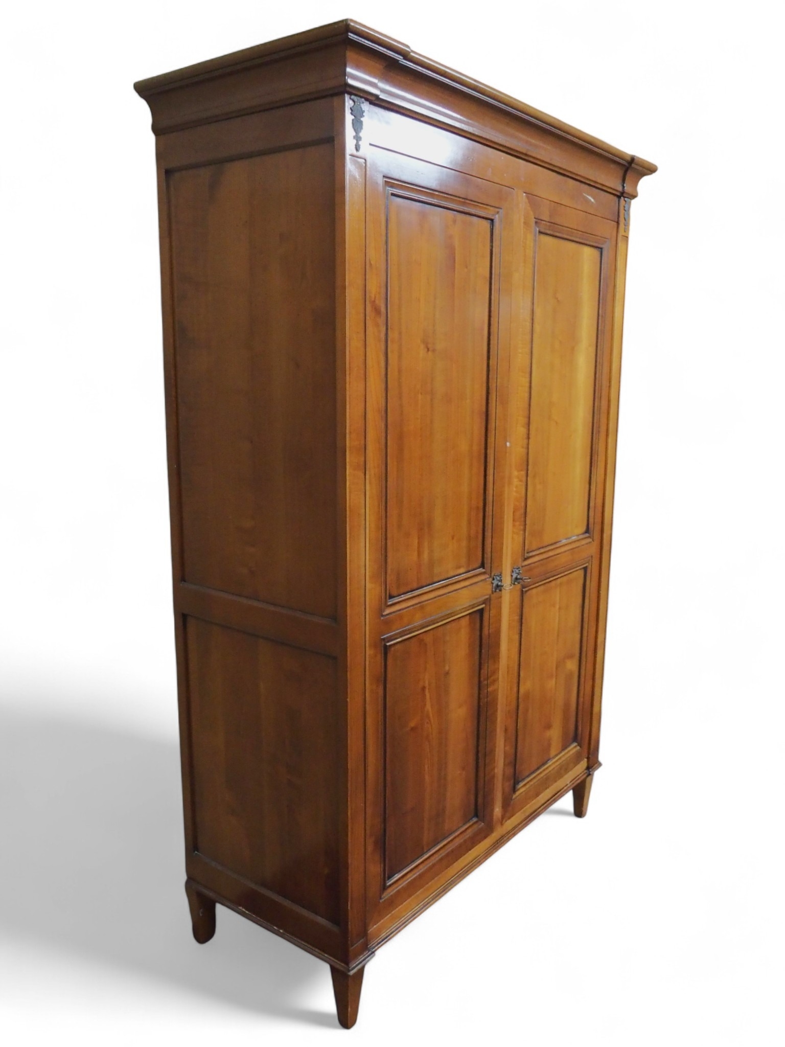 with moulded corned over pair of panel wardrobe doors and sides on square tapering front supports, 209cm high x 138cm wide x 61cm deep