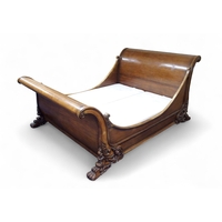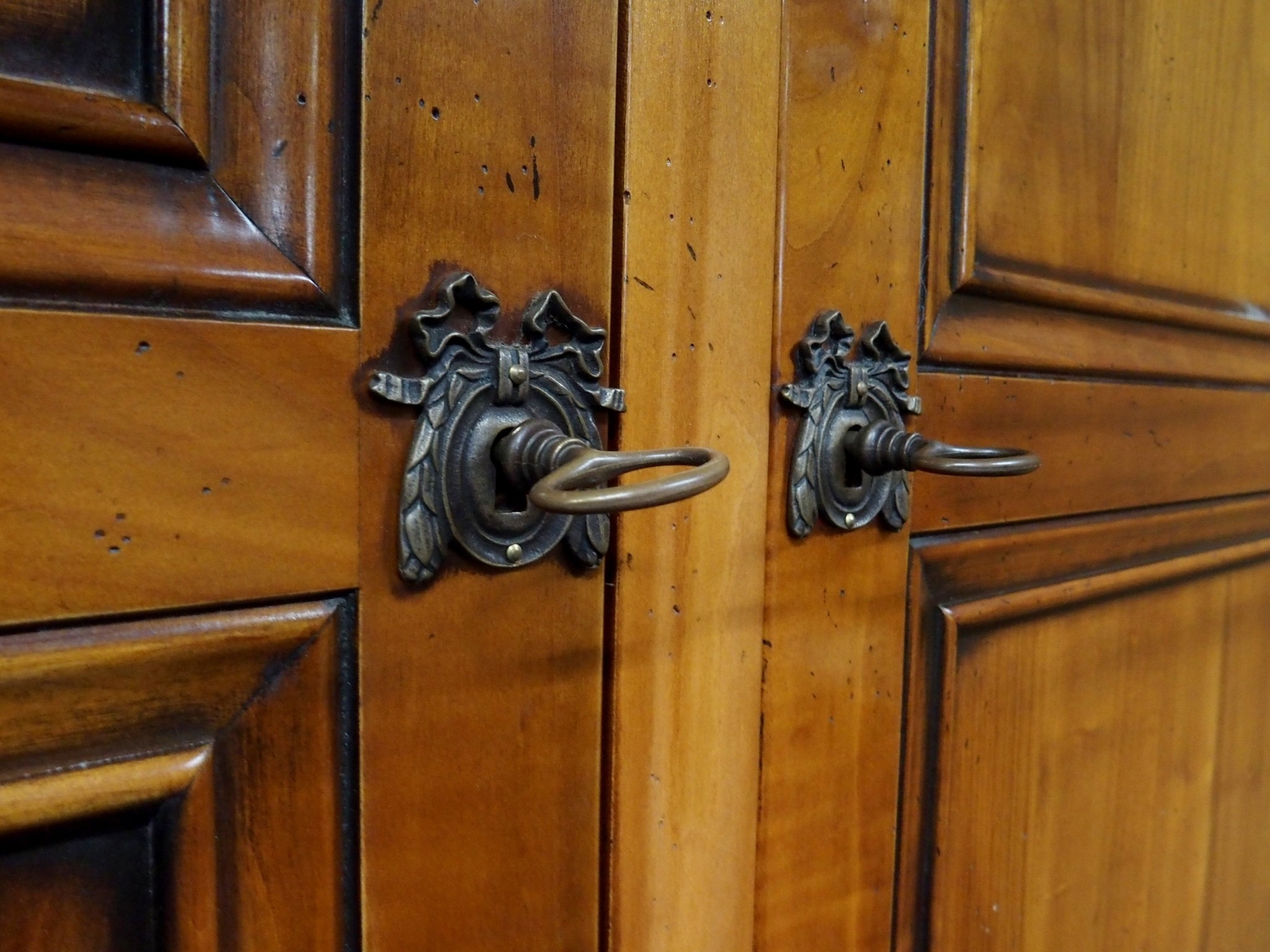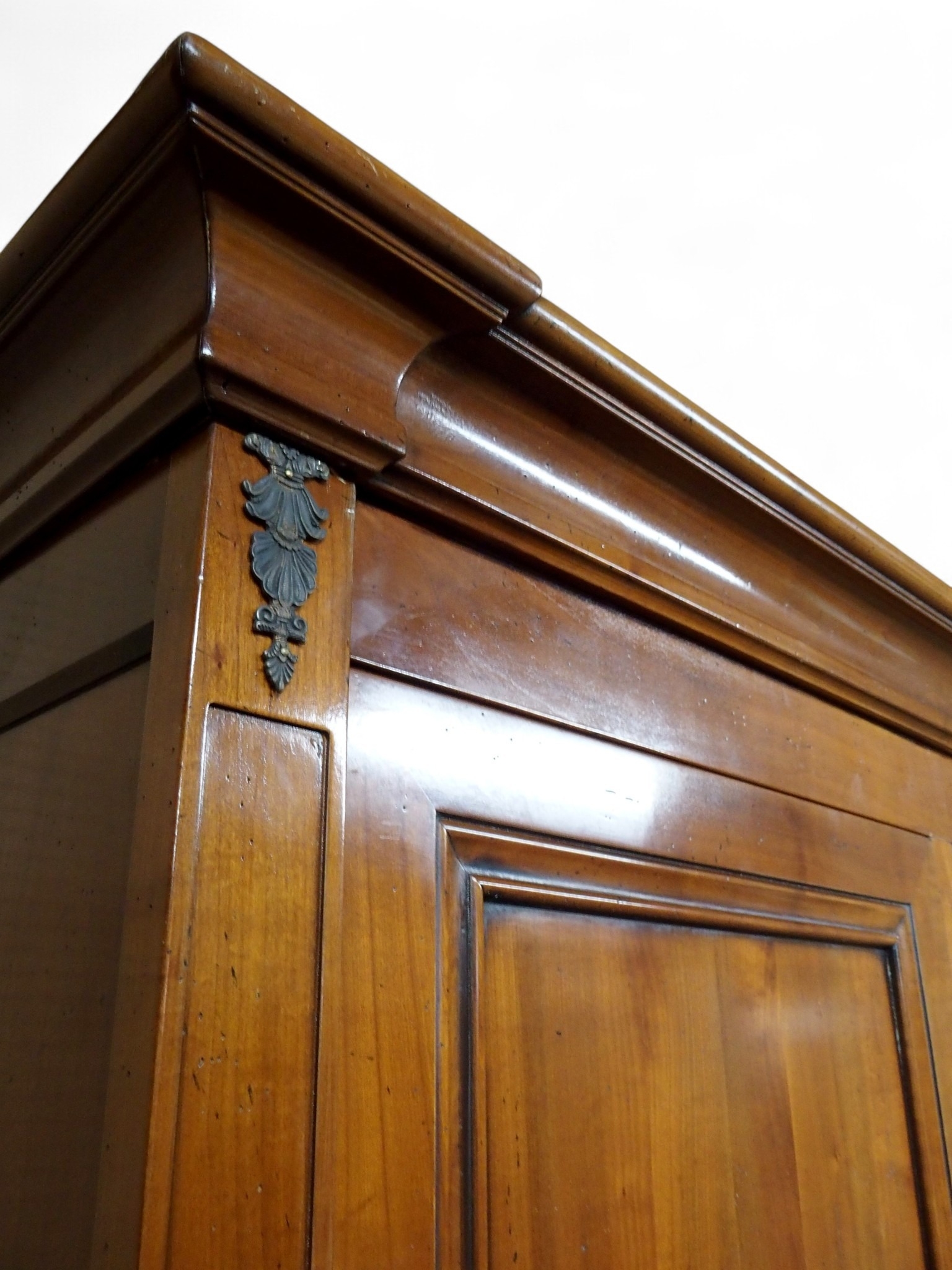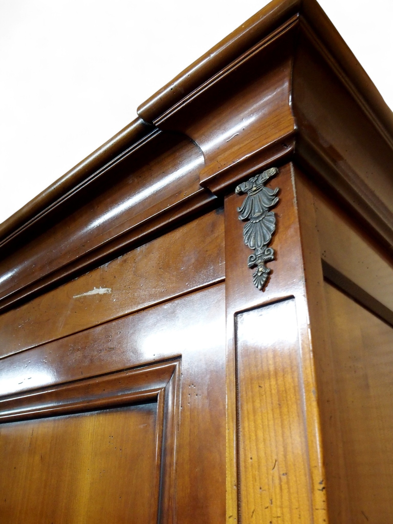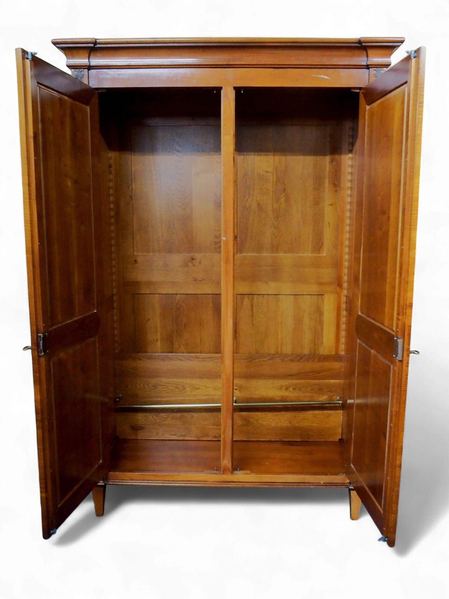 with moulded corned over pair of panel wardrobe doors and sides on square tapering front supports, 209cm high x 138cm wide x 61cm deep