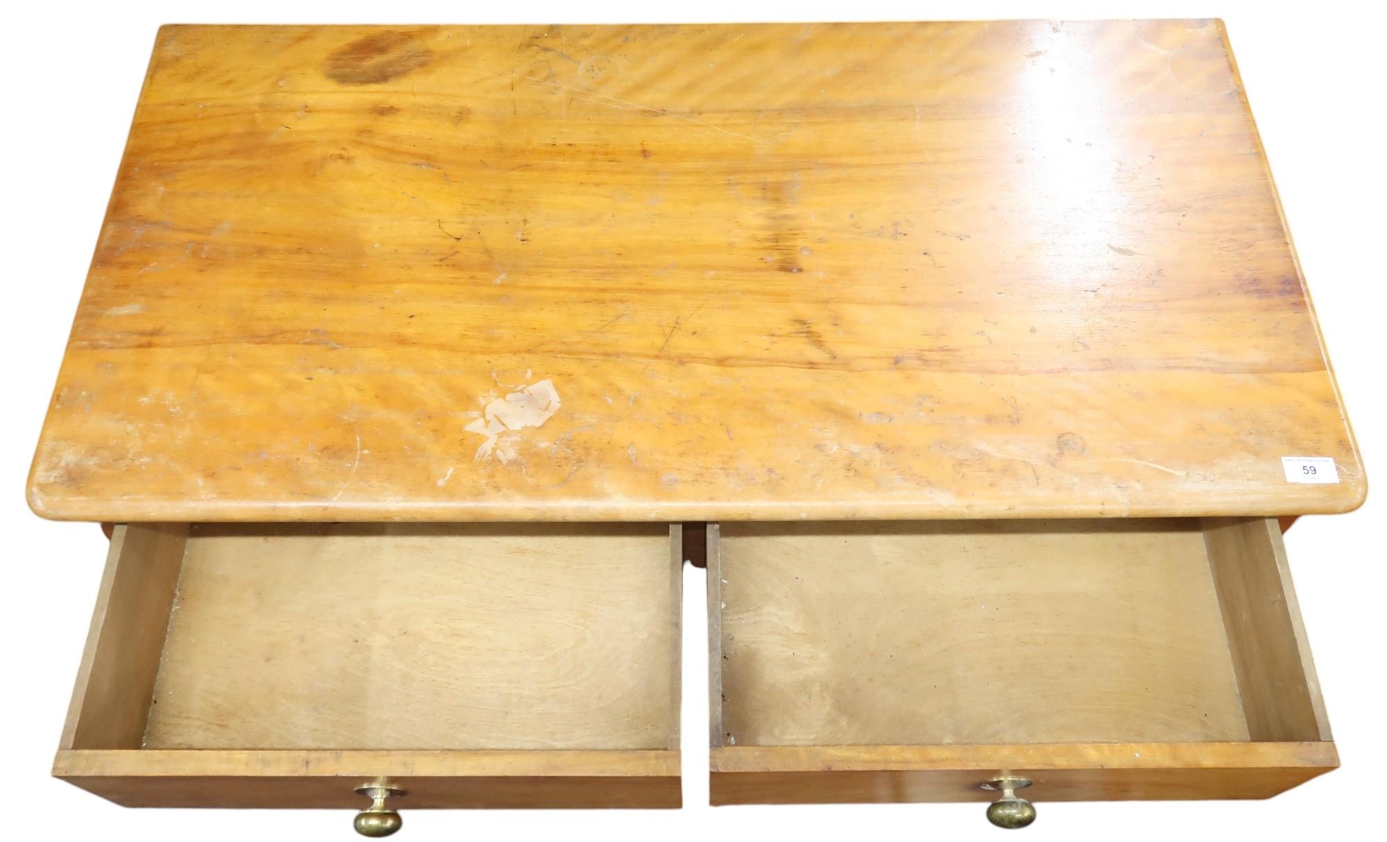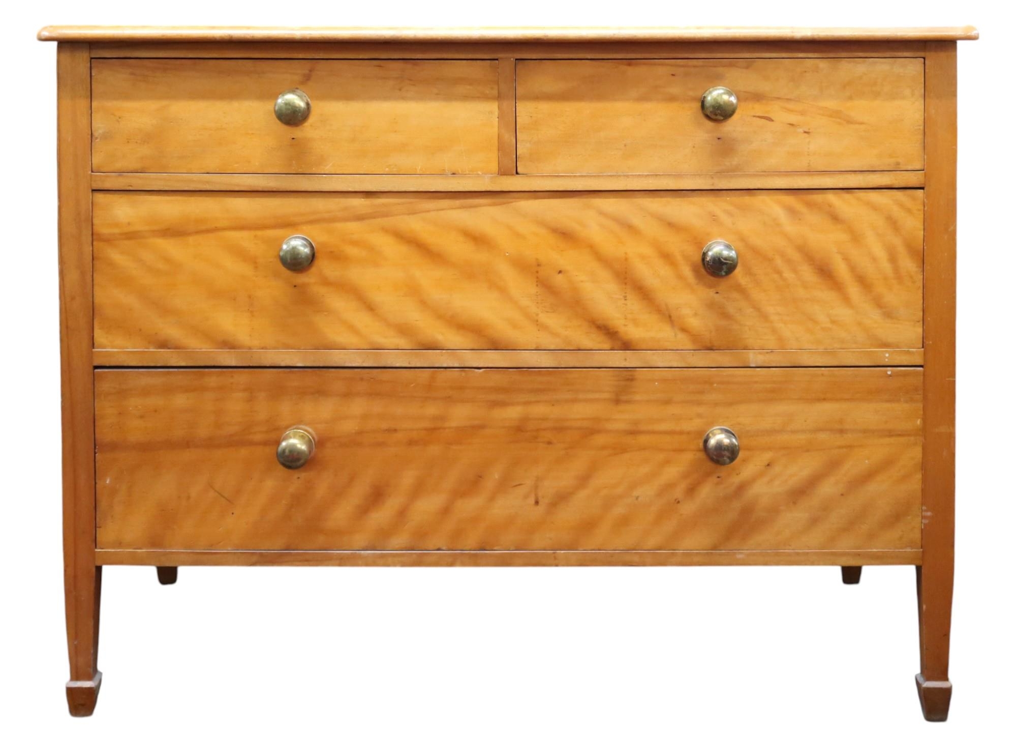 A 20th century maple two over two chest of drawer with brass handles on square tapering supports, 78cm high x 102cm wide x 52cm deep