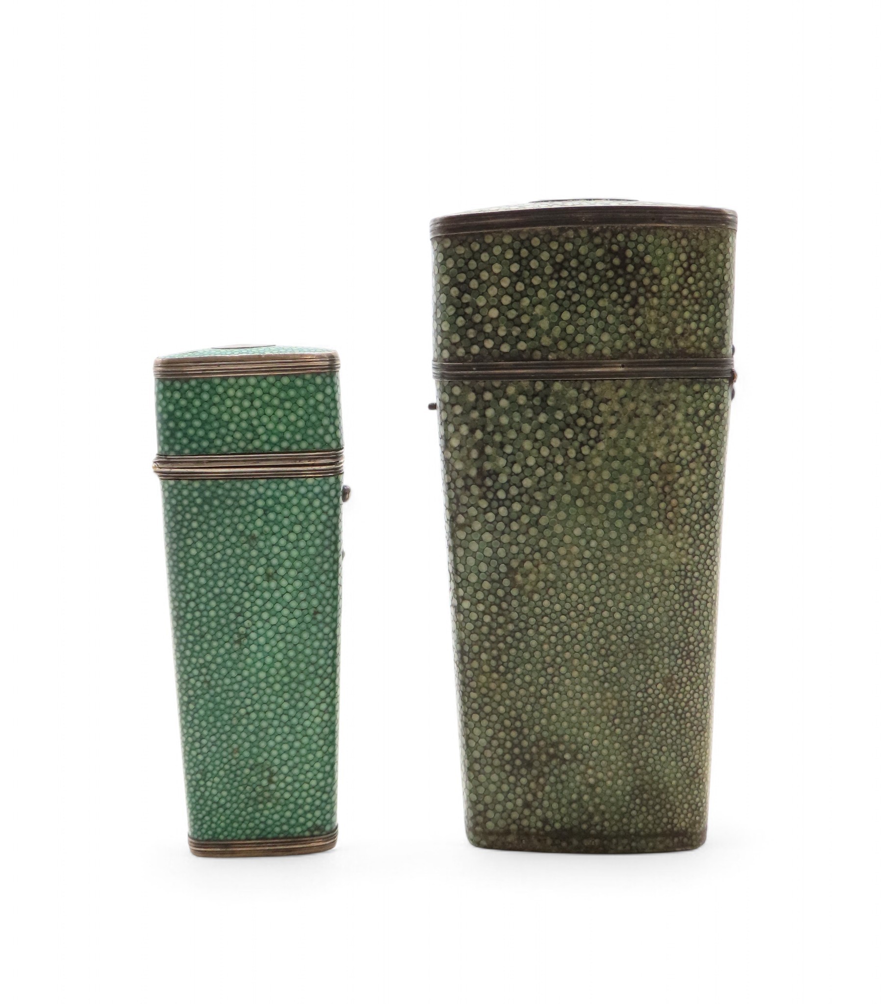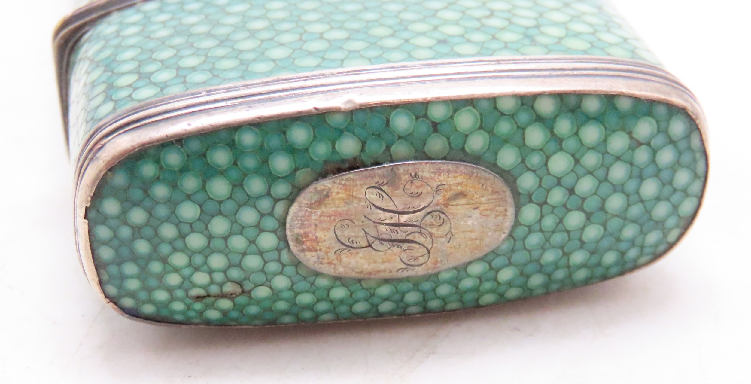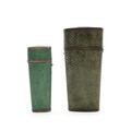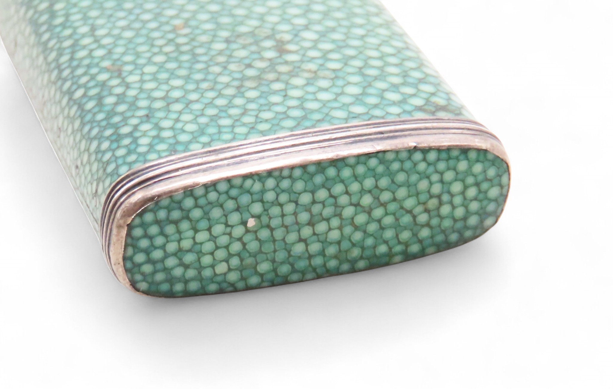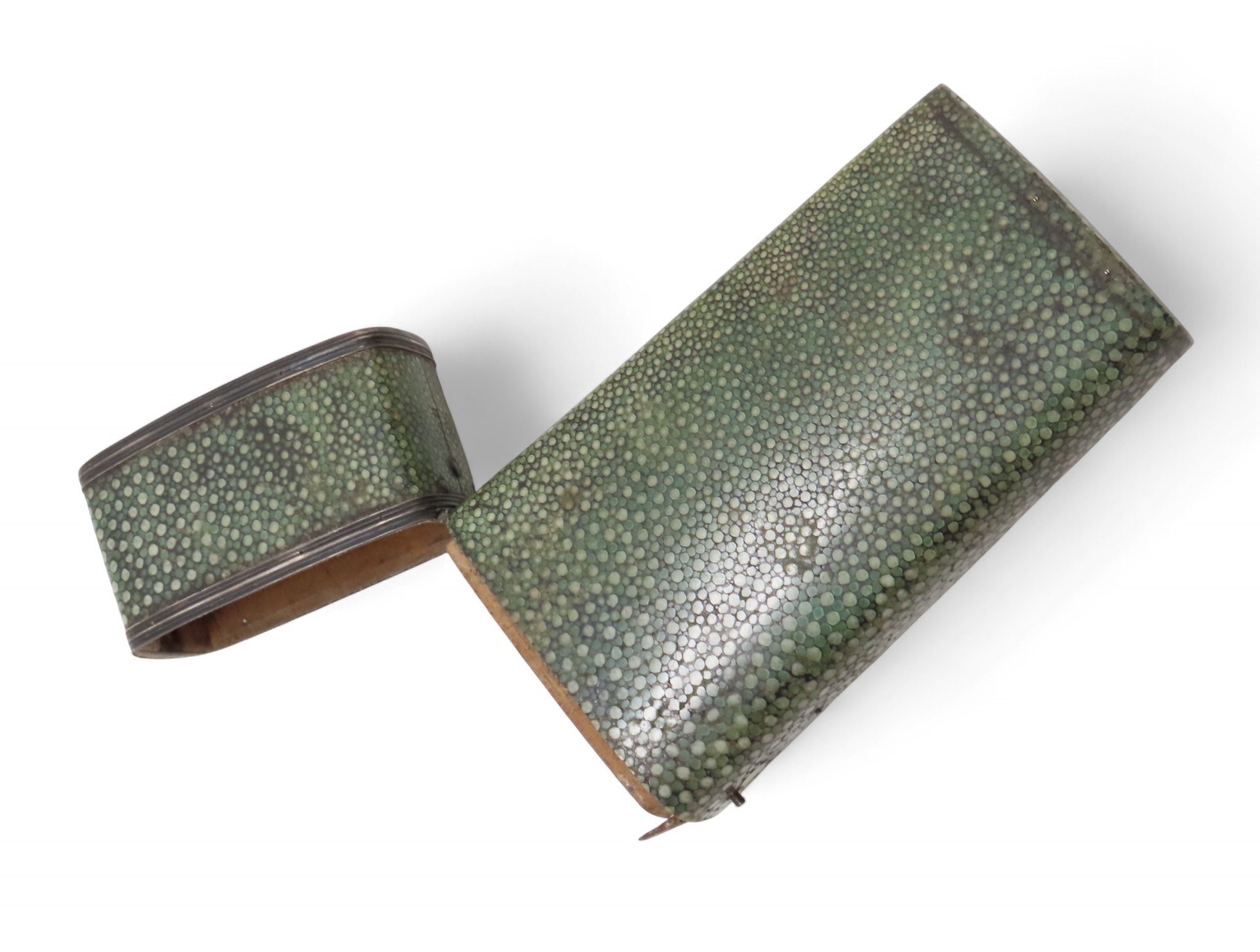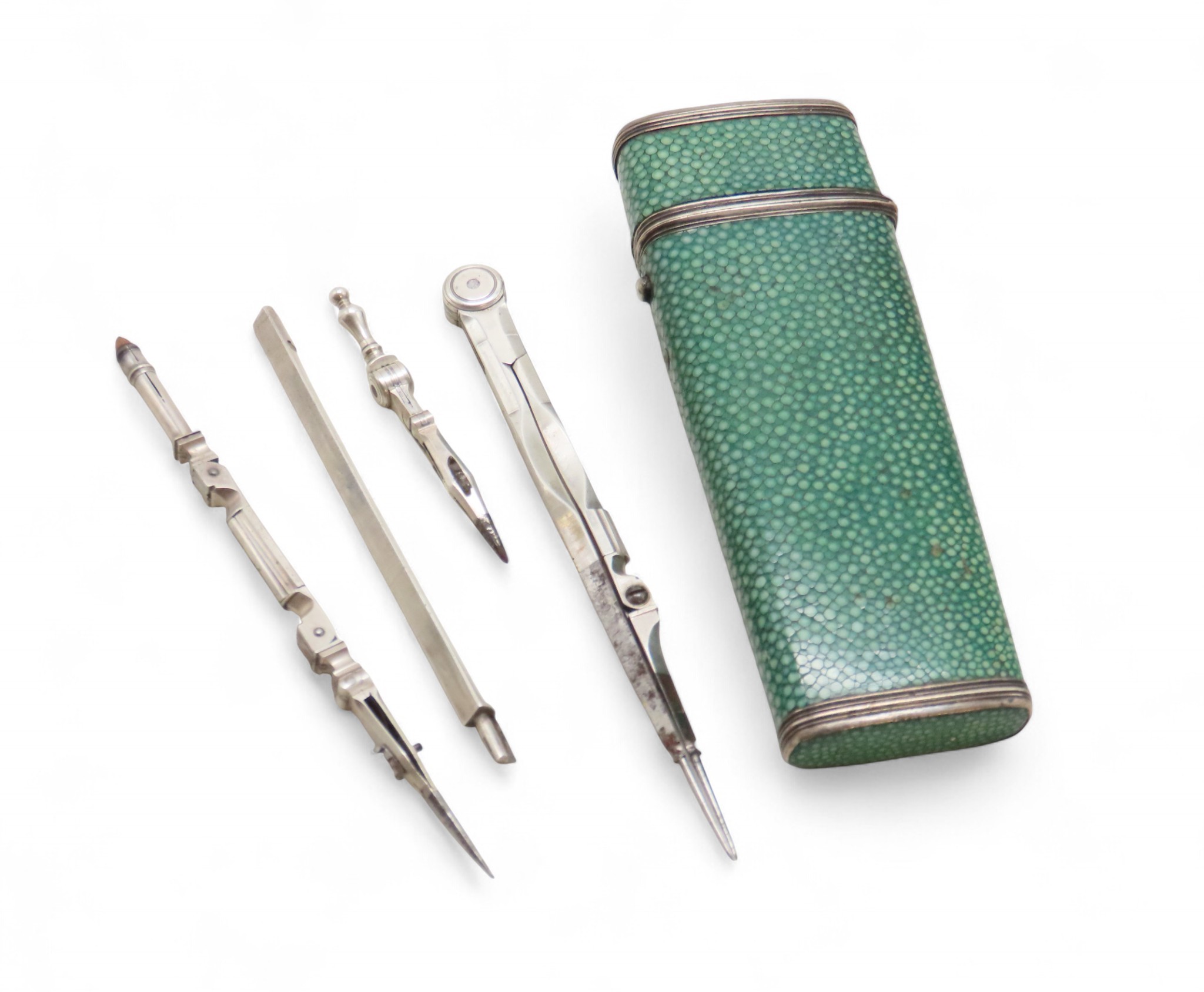 A 19TH CENTURY SHAGREEN & WHITE METAL GEOMETRY NECESSAIRE