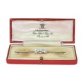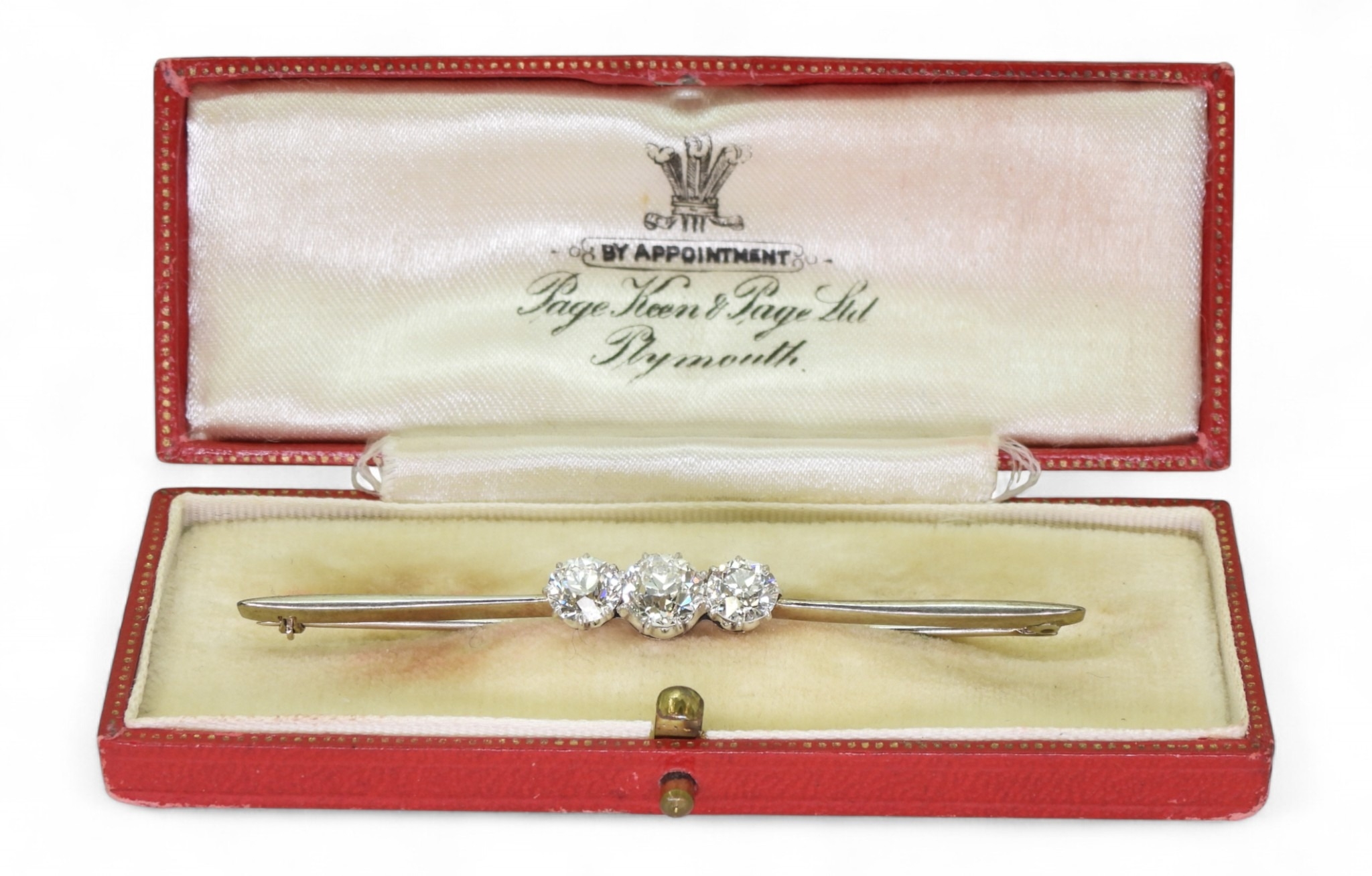 A SUBSTANTIAL THREE STONE DIAMOND BROOCH