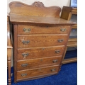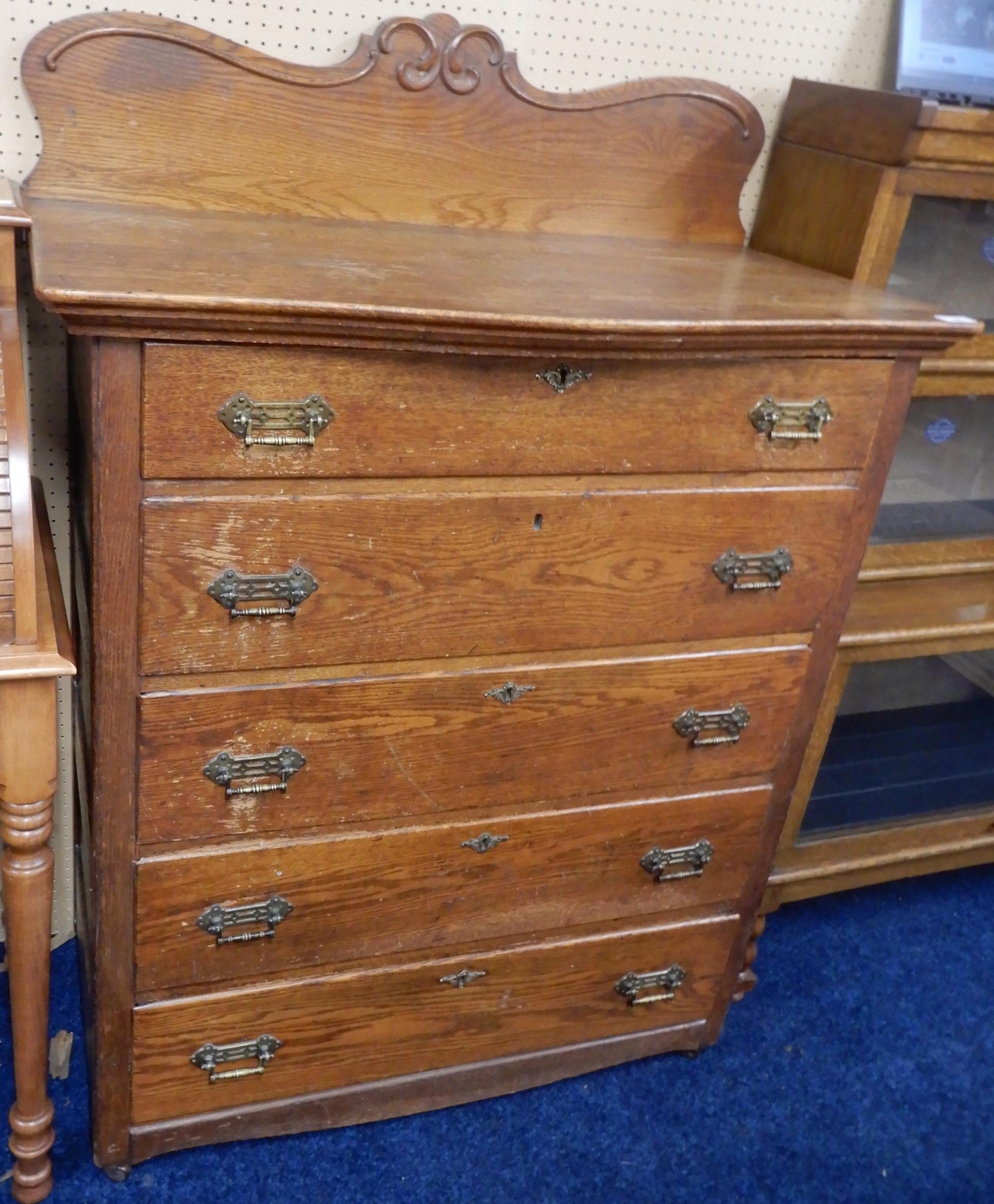 An early 20th century oak chest of drawers with five long drawers on plinth base, 131cm high x 93cm wide x 48cm deep