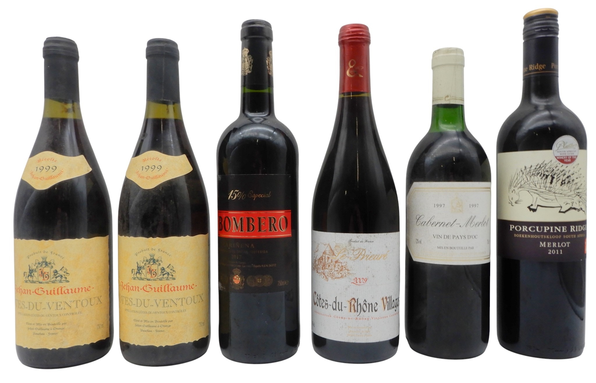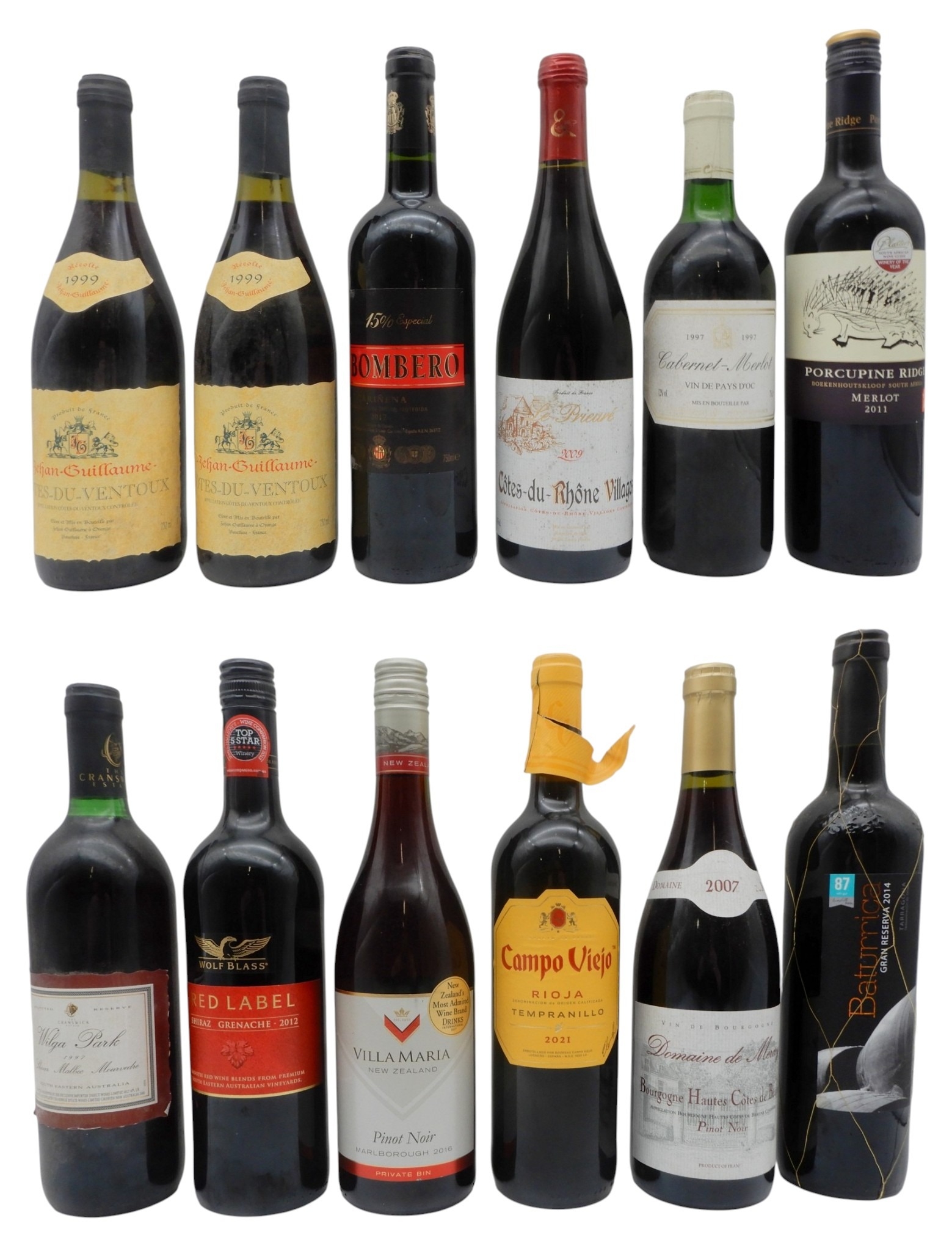 A lot comprising twelve various bottles of red wine to include Jehan Guillaume Cotes Du Ventoux 1999 (12)