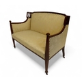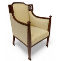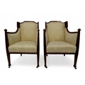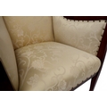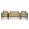 AN EDWARDIAN MAHOGANY FRAMED THREE PIECE PARLOUR SUITE