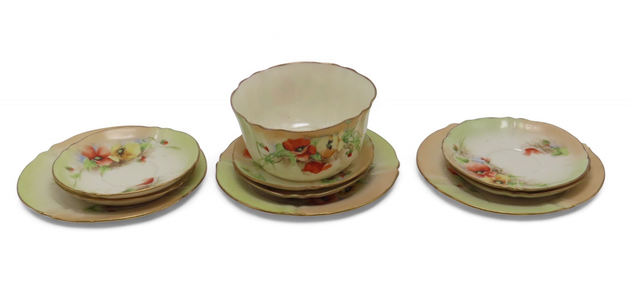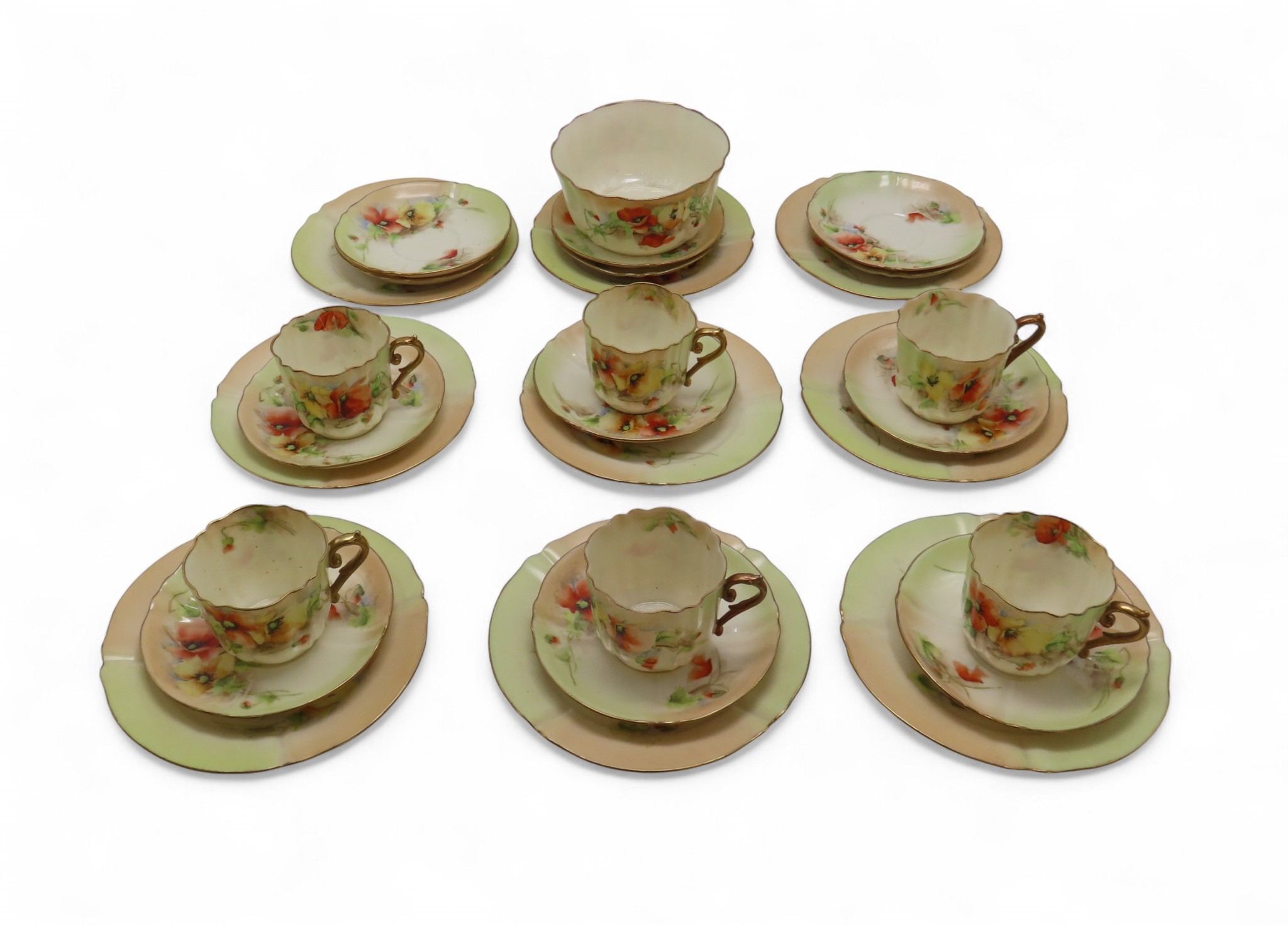 decorated with poppies, comprising six cups, twelve saucers, nine plates and a sugar bowl (28)