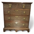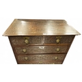 Chest is in a fair condition relative to age and use with some separation of moulding at top corners, splitting to right and left side panels and signs of historic worm to drawer carcasses and linings