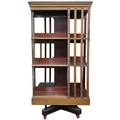 An early 20th century mahogany three tier revolving bookcase on cruciform base with casters, 120cm high x 60cm wide x 60cm deep