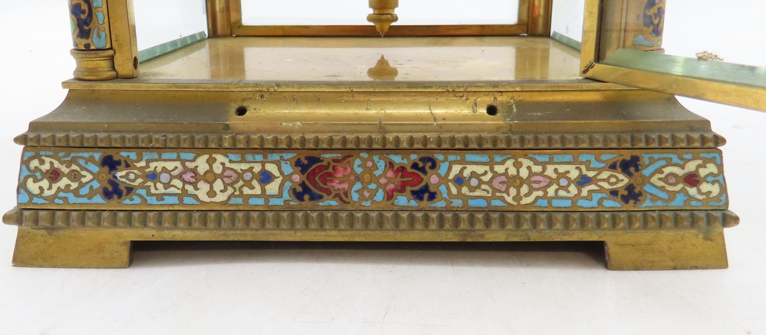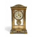 A FRENCH 19TH CENTURY CHAMPLEVE AND GILT BRASS MANTLE CLOCK