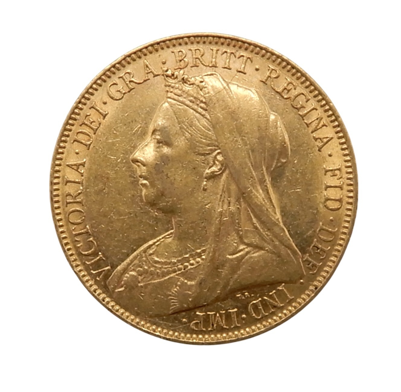 Older crowned and veiled bust of Queen Victoria left, legend around VICTORIA DEI·GRA·BRITT·REGINA·FID·DEF · IND·IMP·