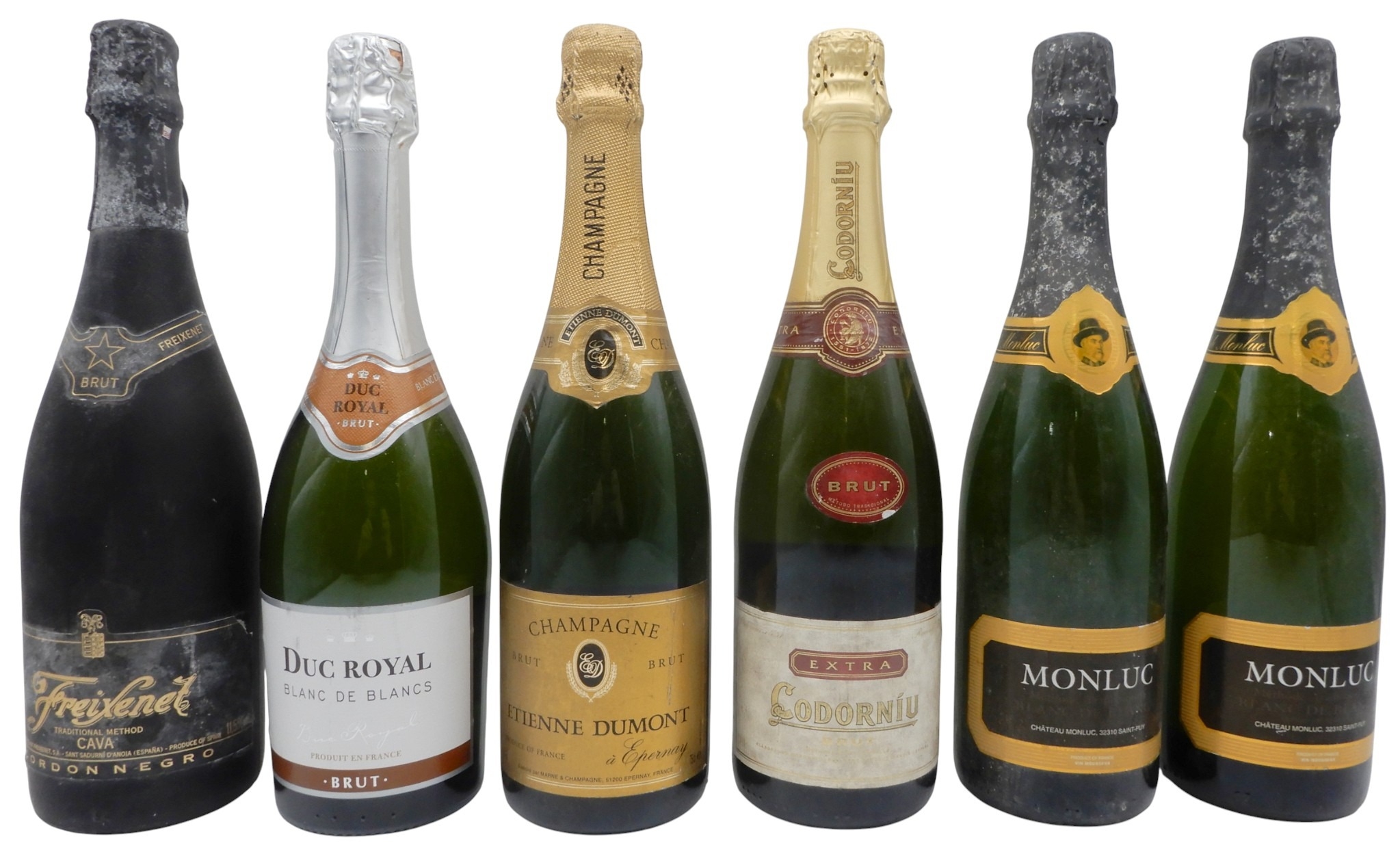 FREIXENET Cava Cordon Negro 75cl 11,5% ETIENNE DUMONT Brut Champagne 12,5 % vol7cl e, vol together with five other various brut, two bottles of MONLUC Blanc De Blancs, DUC ROYAL Blanc De Blancs and CORDORNIU Brut (6)