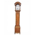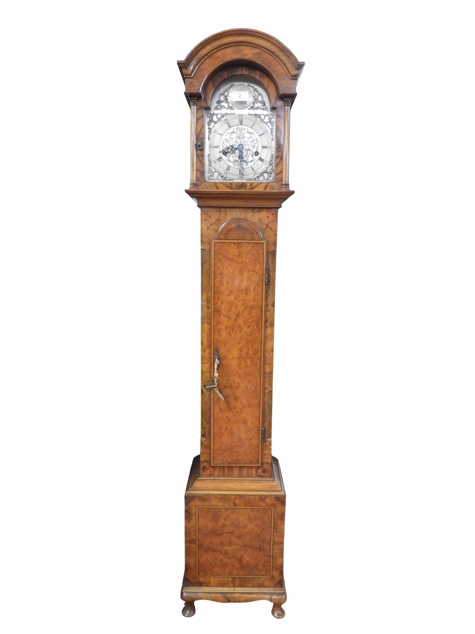 An early 20th century walnut cased grandmother clock with silvered face with silvered dial bearing Roman and Arabic numerals and ormolu mounts, 153cm high x 33cm wide x 23cm deep
