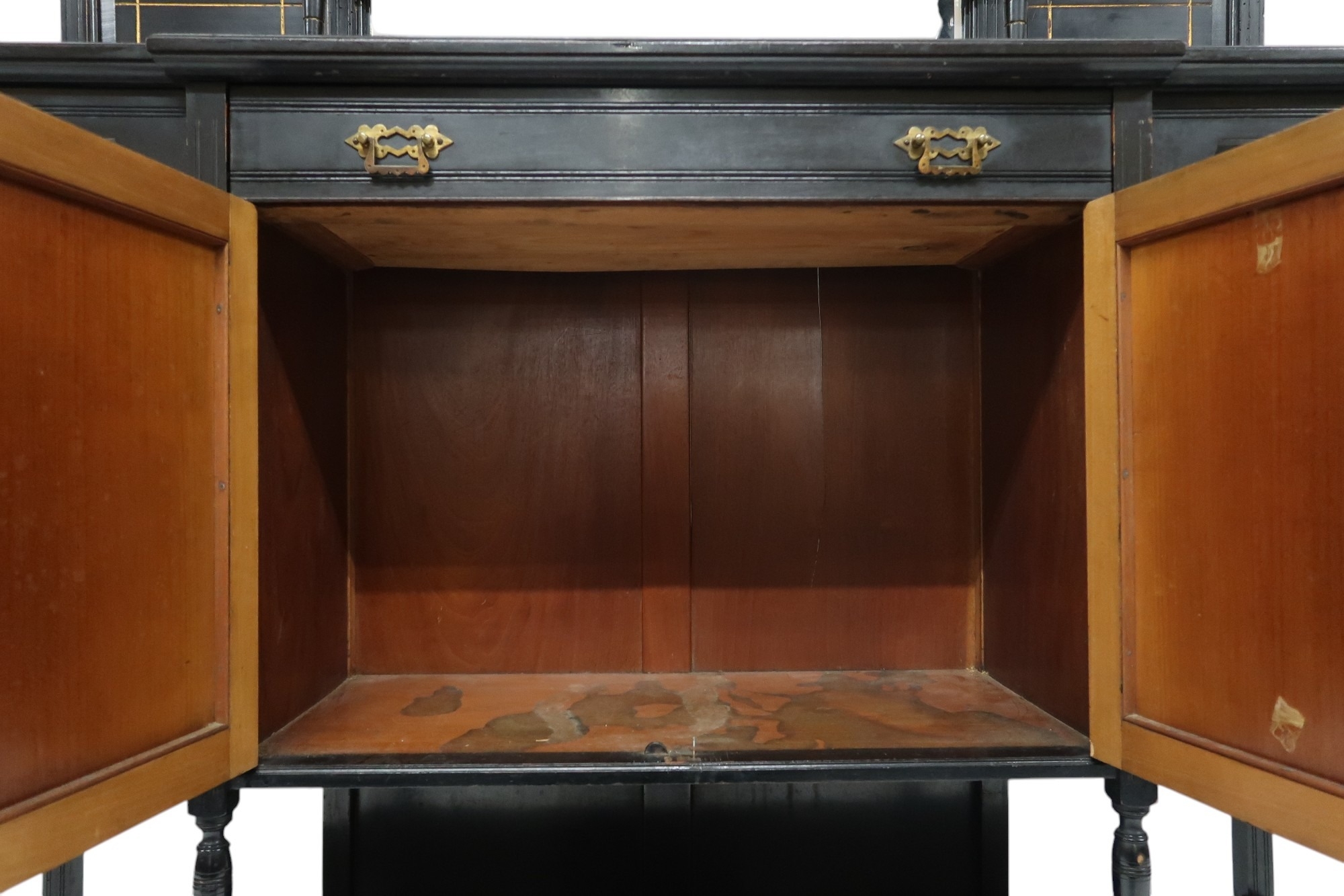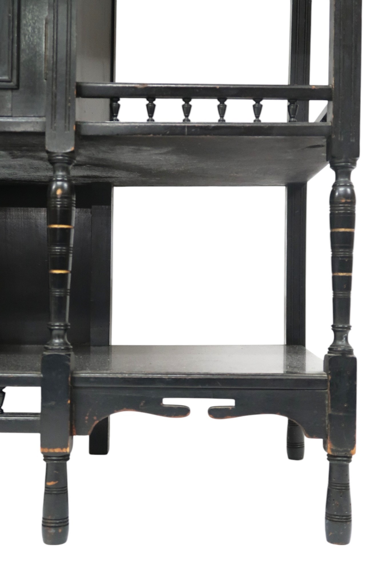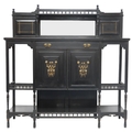 A LATE 19TH CENTURY EBONISED AESTHETIC MOVEMENT BREAKFRONT SIDE CABINET