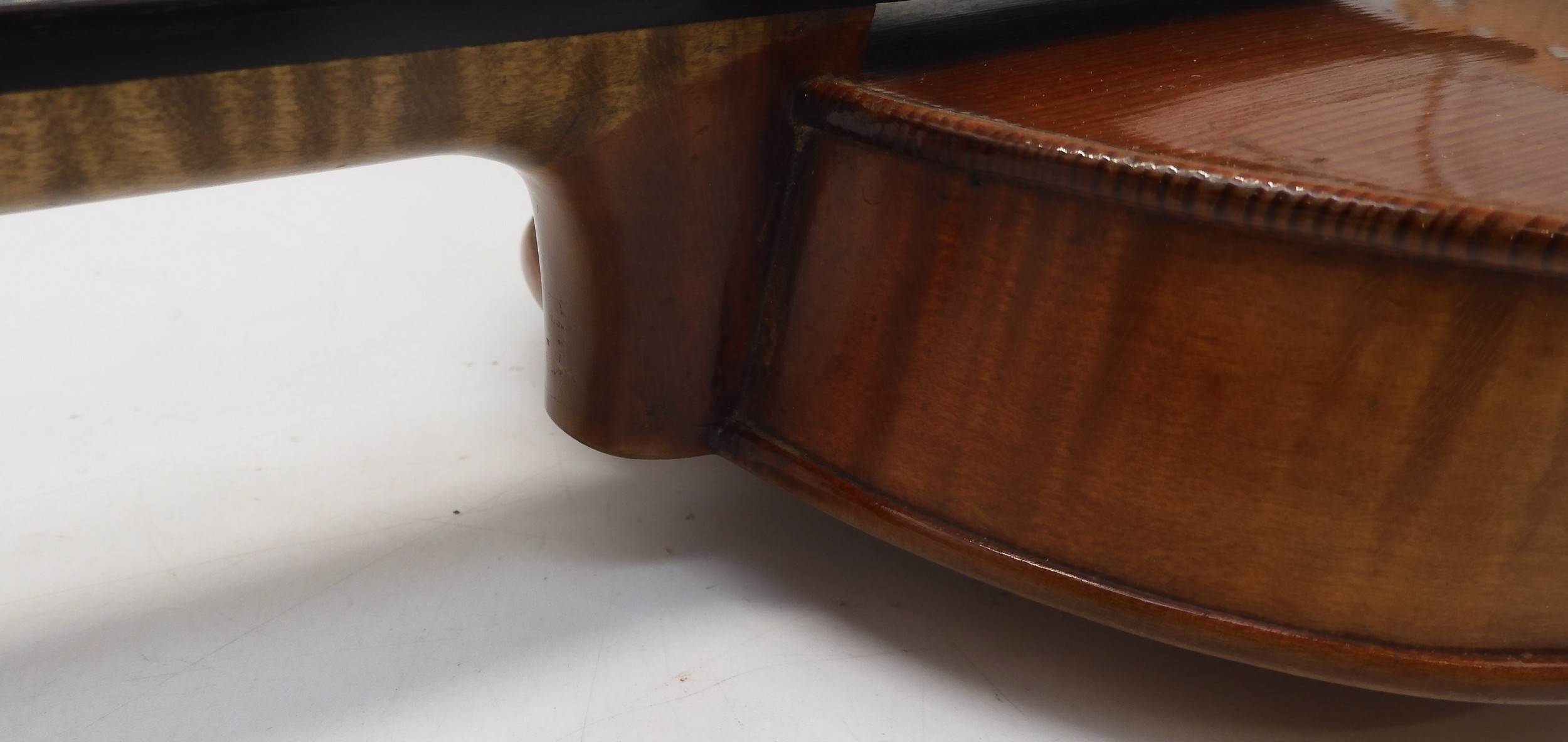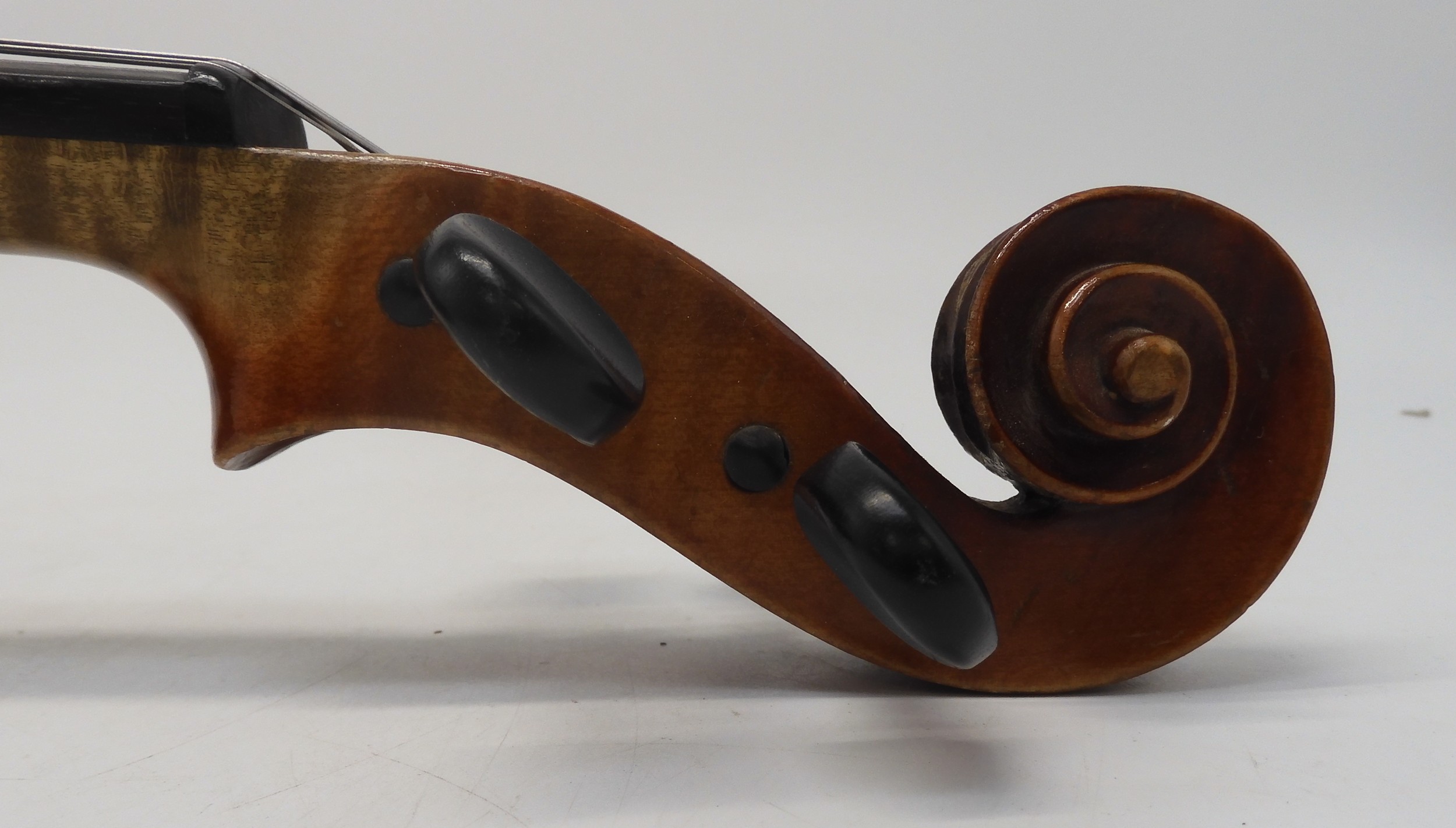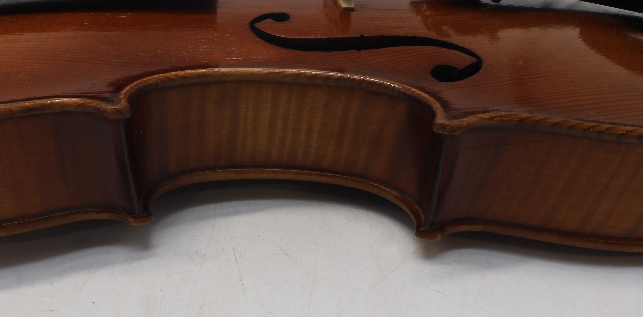 A two piece back Viola 39cm labelled to the interior Modele