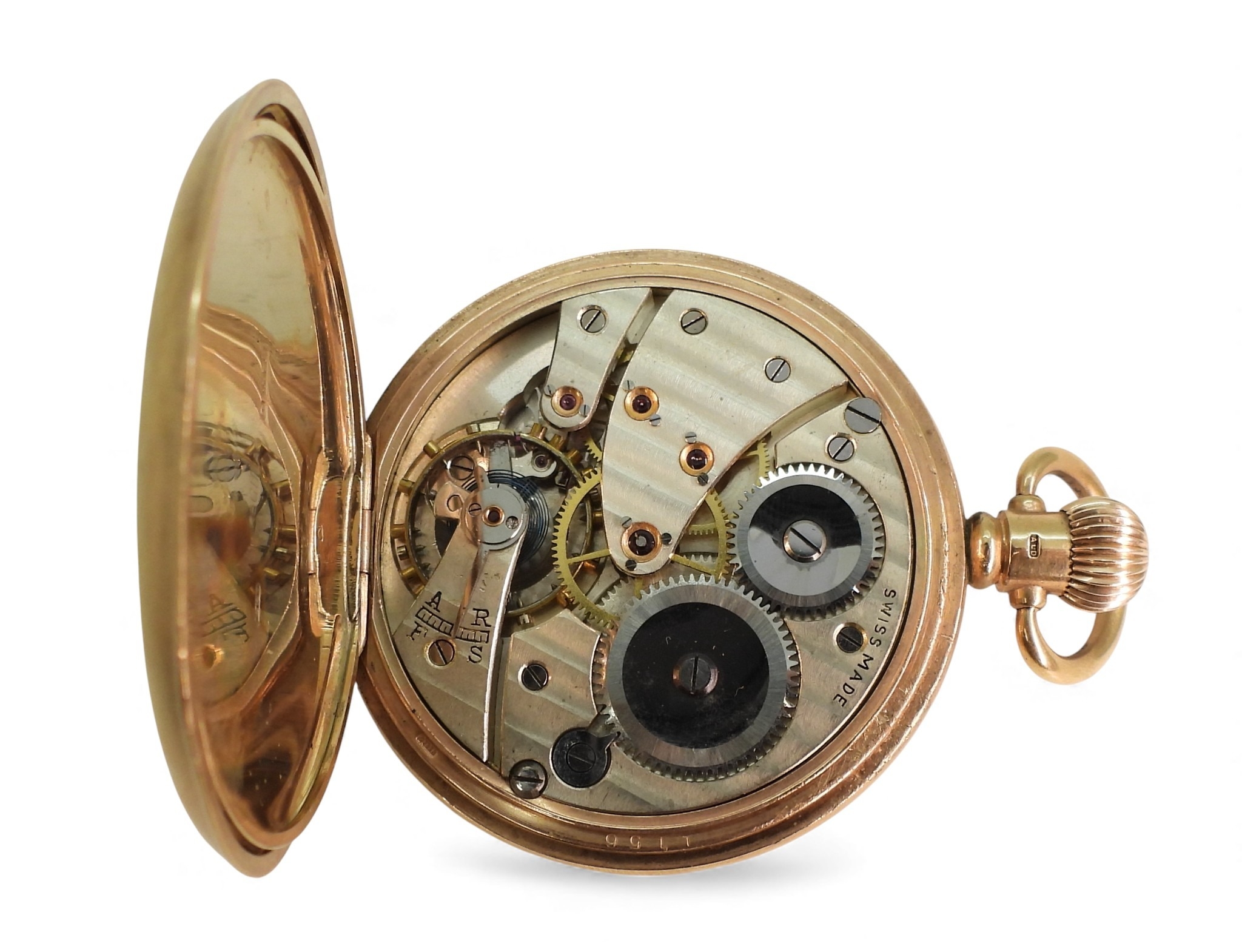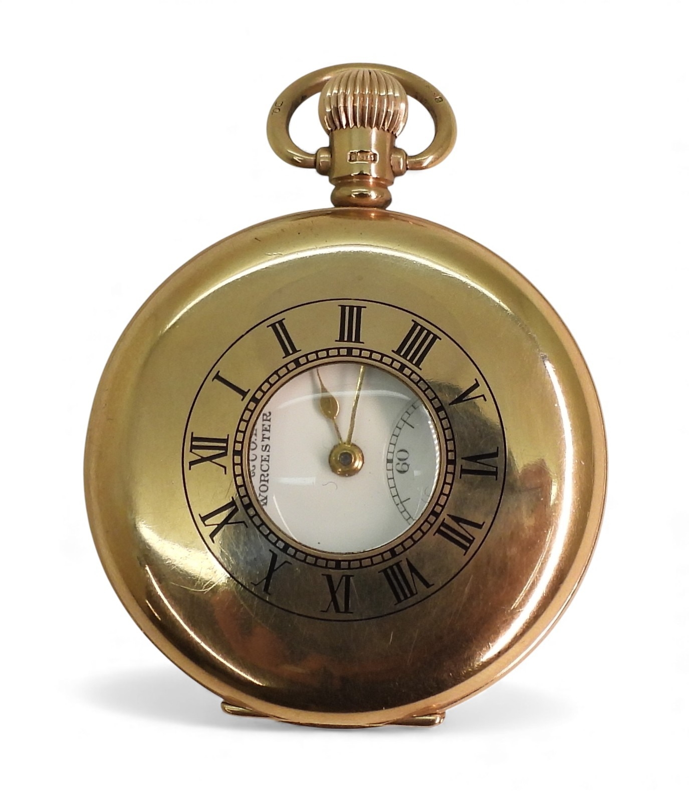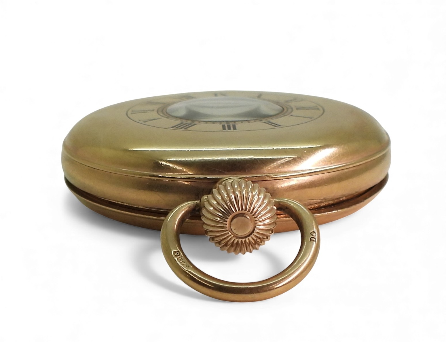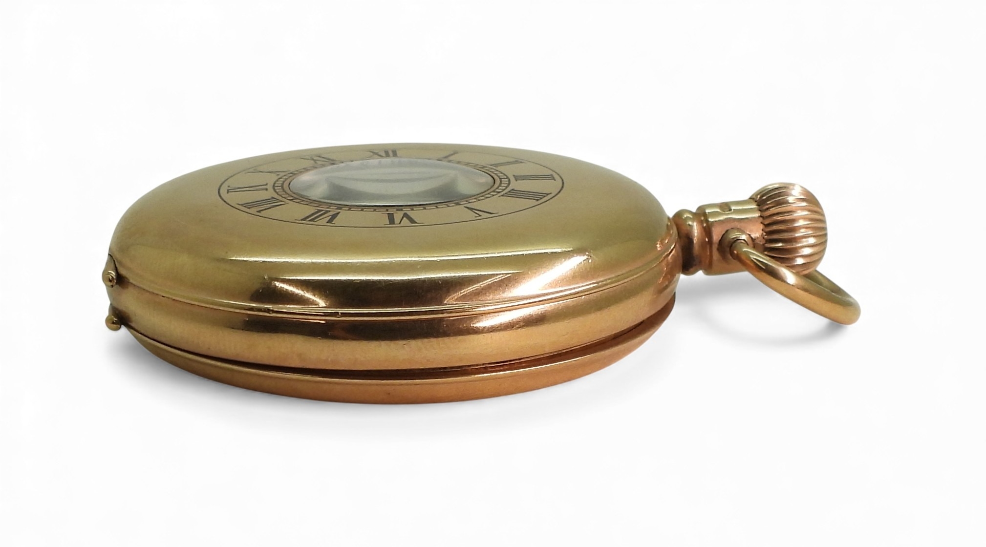 A 9CT ROSE GOLD HALF HUNTER POCKET WATCH