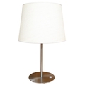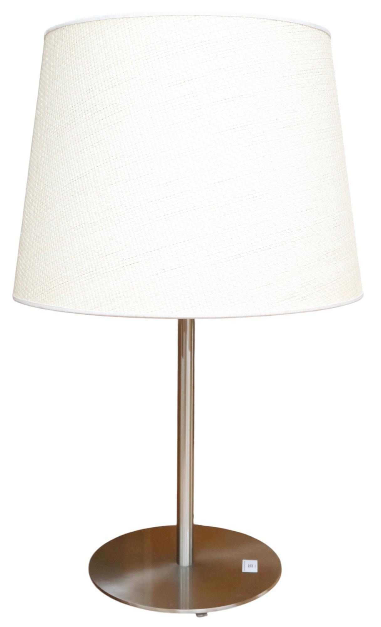 A late 20th century Natuzzi designer table lamp with accompanying shade on brushed steel circular base, 77cm high x 48cm diameter