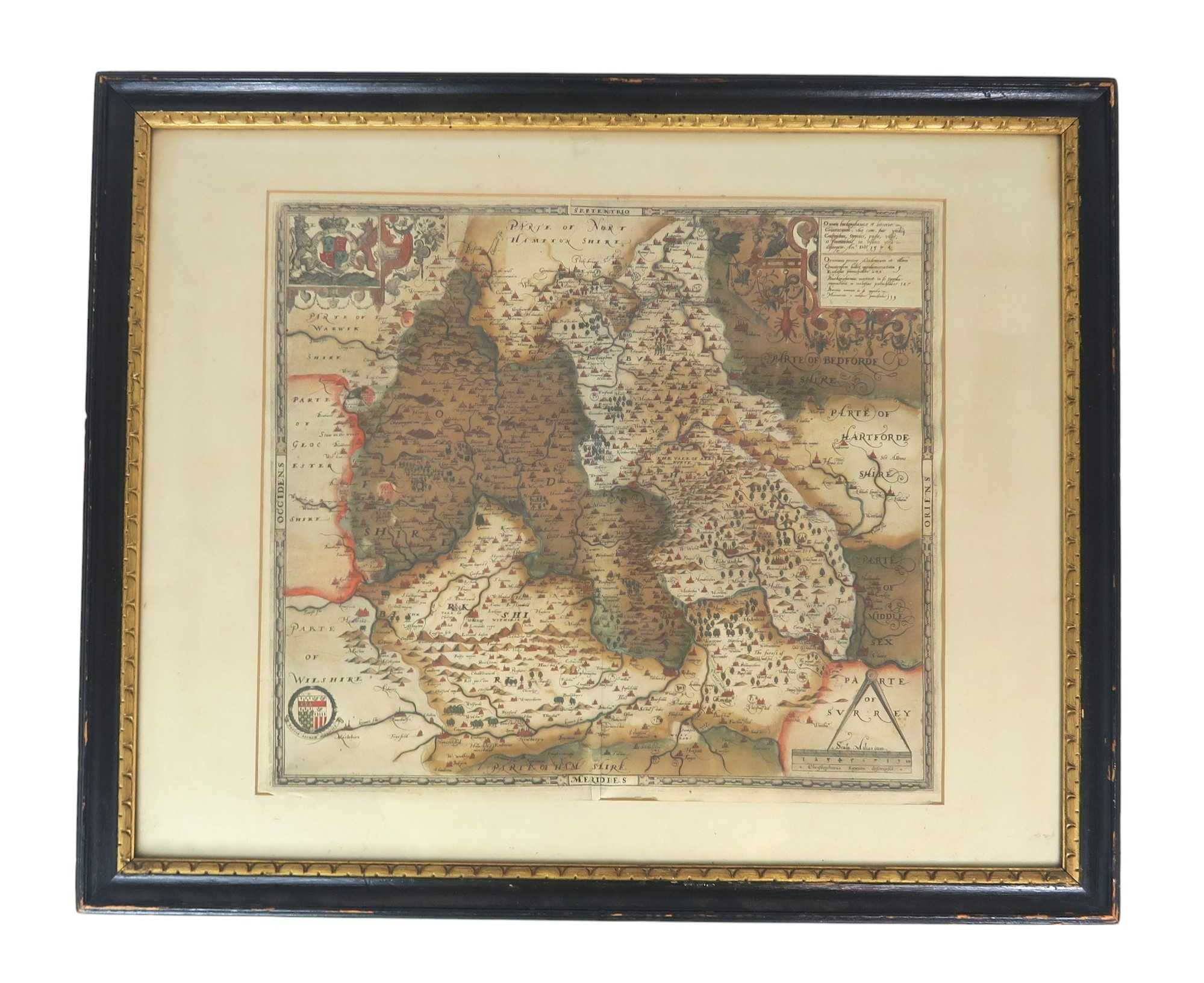 Oxonii Buckinghamiae et Berceriae Comitatum una cum suis undiq confinibus, oppidis, pagis, villis, et fluminibus in eisdem vera descriptio. An Dm 1574 [1579]