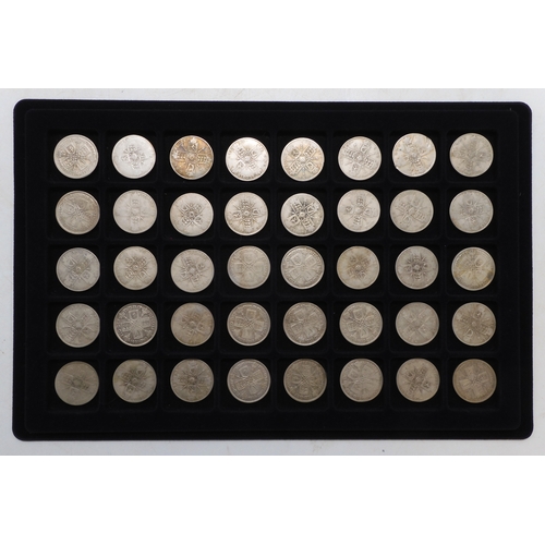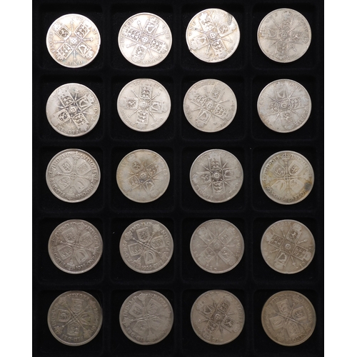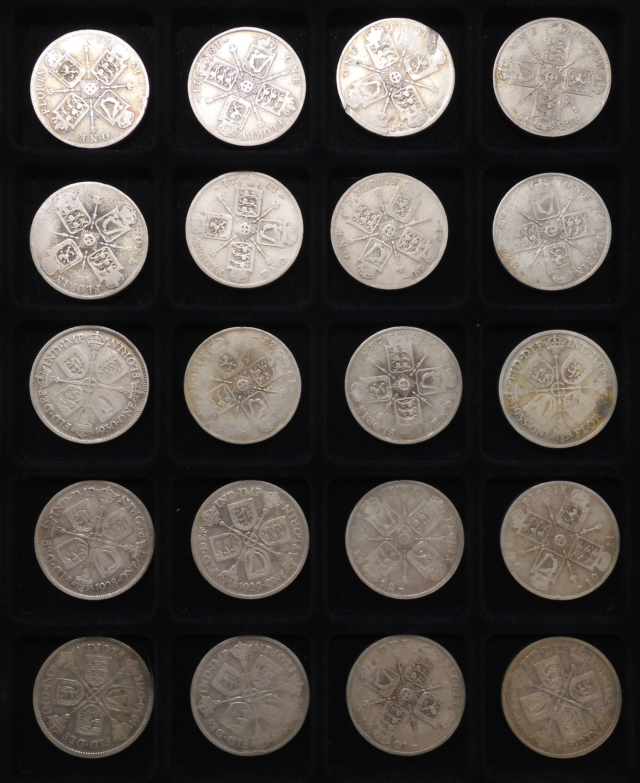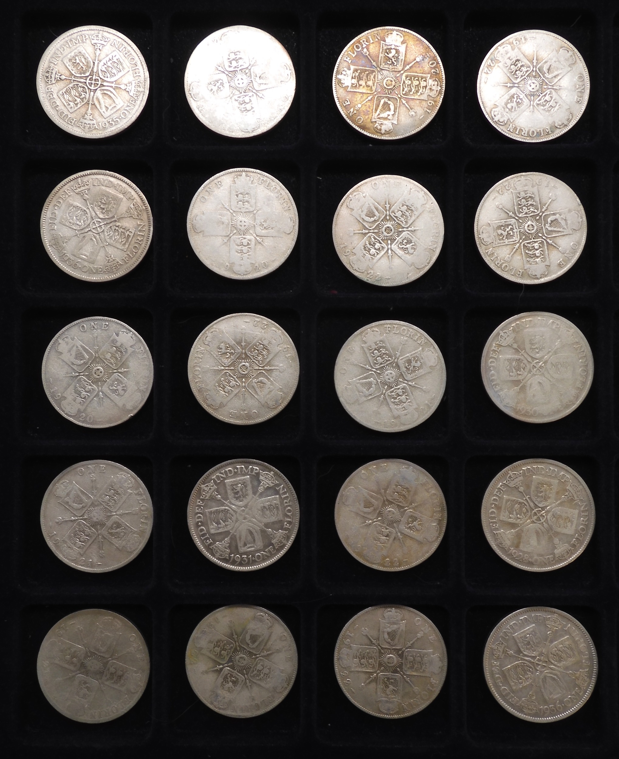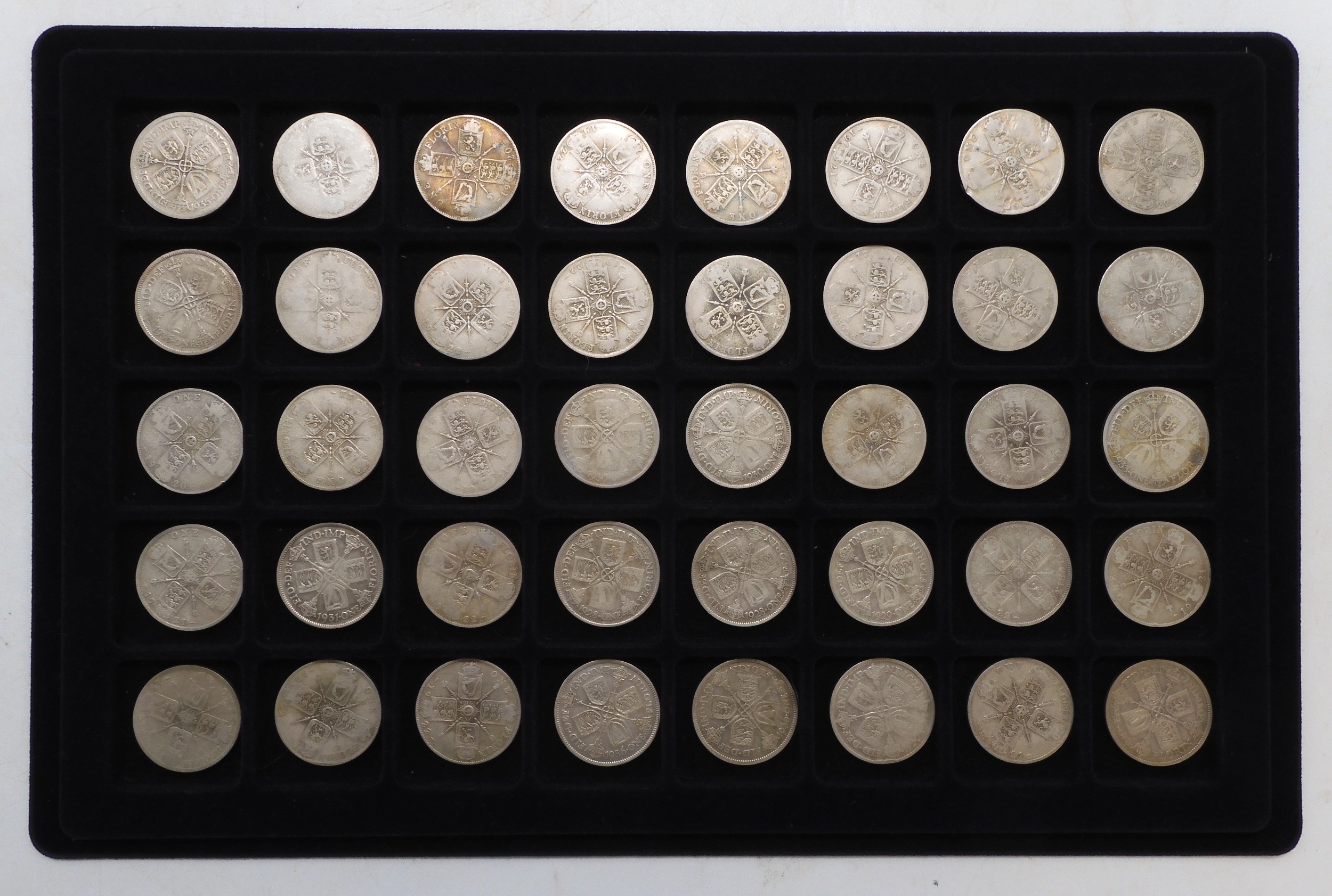GREAT BRITAIN a collector's tray of pre-1947 1 florin coins (40)