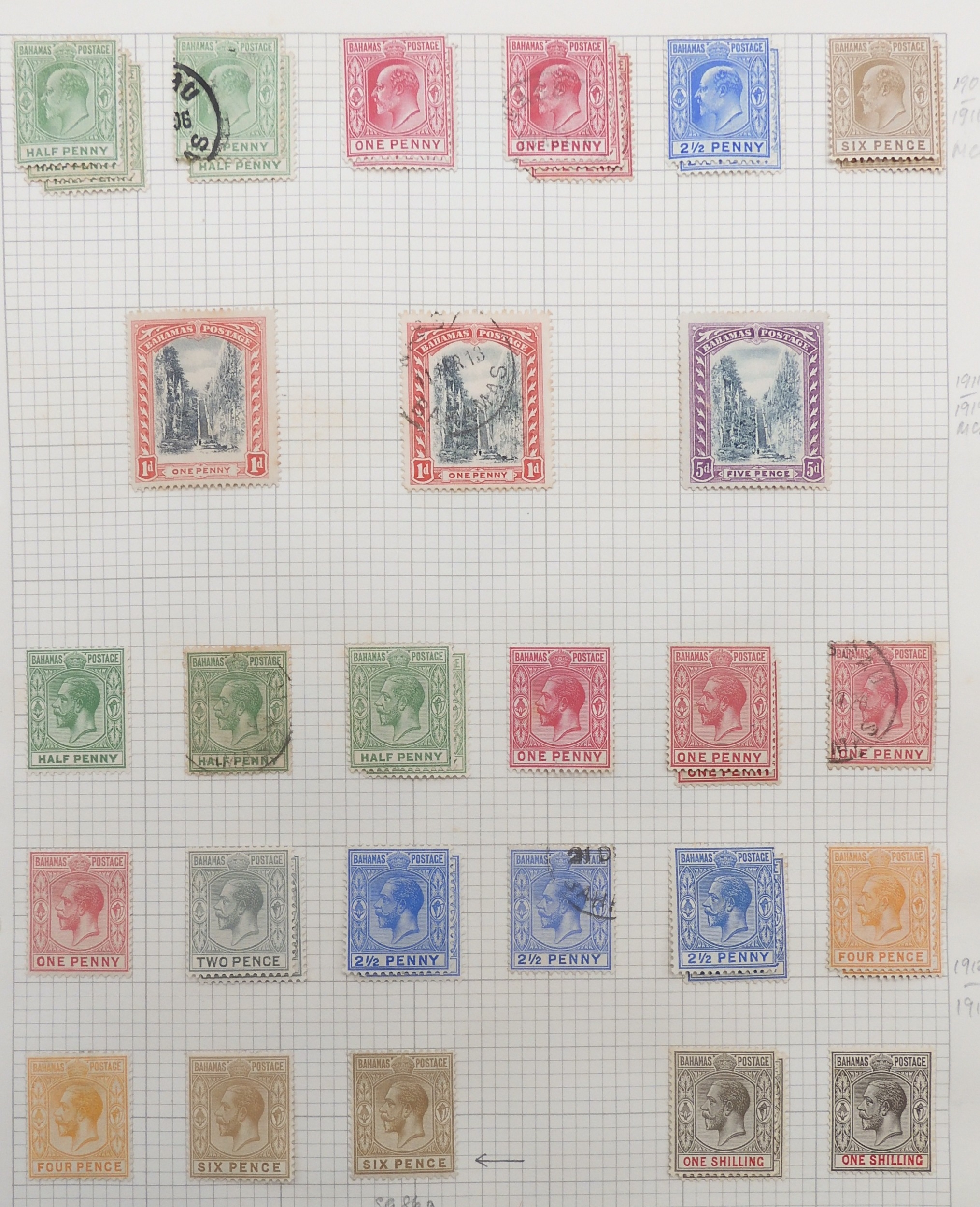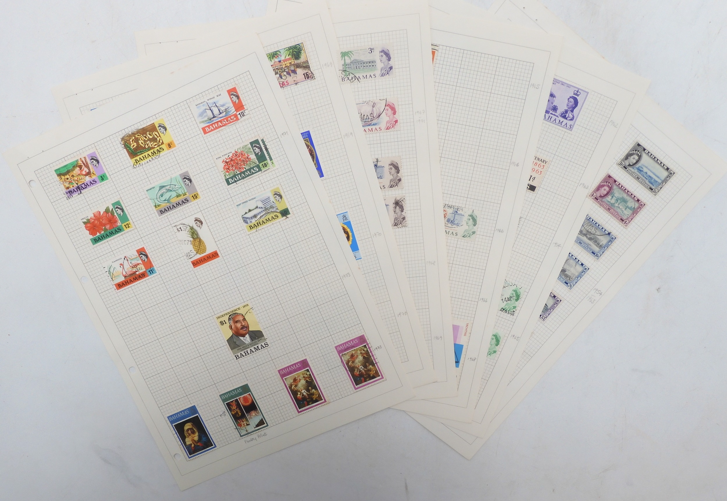 BAHAMAS a collection on sheets to include sg2 1d 4 margins mint, 1862 4d used, various 1863-1867 1d mainly unused no gum, 1863 various mint and used to 6d together with £1 sg57 mint and used, 1901 set mint, 1902 set to 1/- mint and used, 1906 set including duplicates, 1921 to 5/- used, 1921 5d sg111 mint etc